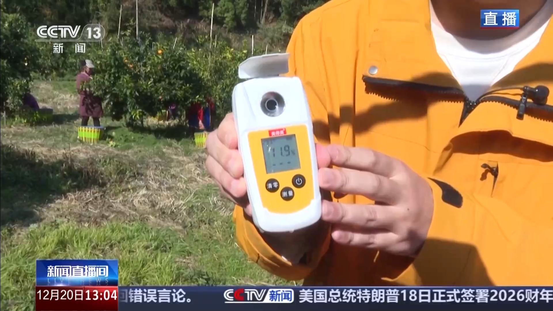 从现场切开的柑橘看,它的皮非常薄,大概只有2~3毫米,中间的果肉隔膜薄如蝉翼,整个果实的可食率达到76.8%。此外,糖度也是衡量品质的关键,经记者现场测试,糖度为11.9,而我们常吃的西瓜糖度一般是12左右,说明柑橘的含糖量非常高。