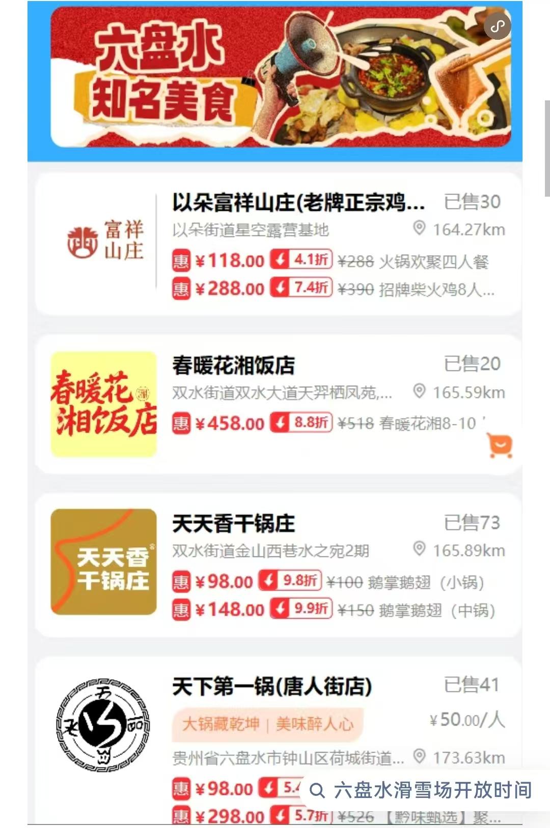 获取消费金后可在线预订六盘水美食向佳羊肉粉、全友福烙锅、盘州食府等超多美食门店美食金可直接抵扣每笔订单金额的30%直接少单笔至高抵扣90元!