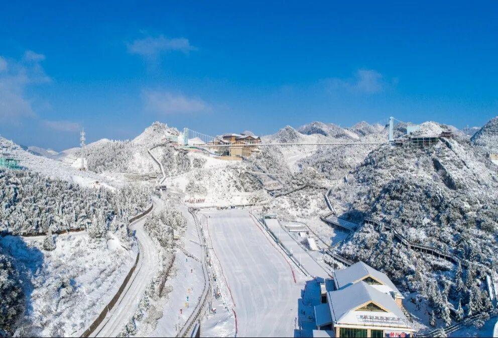 玉舍雪山滑雪场位于北纬26度、海拔2300米的玉舍国家级森林公园内,是全国纬度最低、贵州首家高山滑雪场,雪质松软,摔跤也不疼。