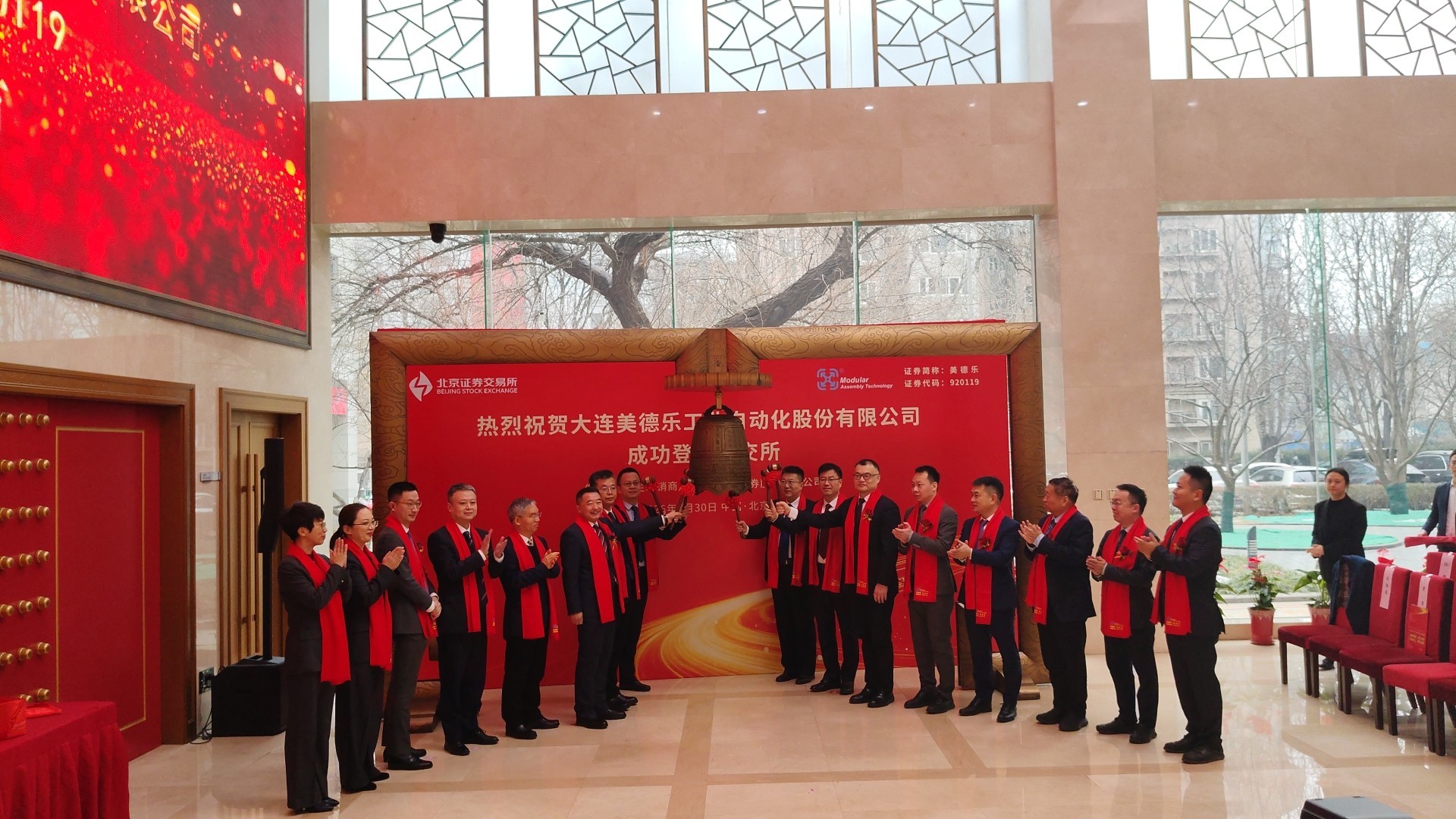 1月30日,伴随着一阵清脆悠扬的钟声,大连美德乐工业自动化股份有限公司(以下简称“美德乐”)正式在北京证券交易所挂牌上市。作为辽宁省今年第一家上市公司,美德乐成功走通了从新三板挂牌到北交所上市的完整路径,成为普兰店区以链式思维驱动新兴产业发展的一个标杆,也开启了区域产业与资本融合发展的崭新篇章。